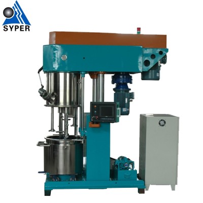 高效行星双轴搅拌机通过釜内两根搅拌轴在绕釜体轴线公转的同时又绕自身轴线快速自转,使物料受到强烈的剪切和捏合,得以充分的分散和混合。