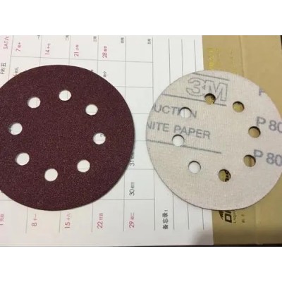 上图为我公司实拍3M6寸6孔砂纸,我公司砂纸规格种类齐全,还可根据实际要求定制各性状尺寸砂纸。