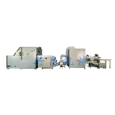我厂开发新一代自动上料机,开松机,棉料经开松,风机喷灌,枕套气动装夹一步到位,使产品更加均匀,饱满。