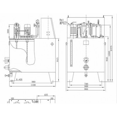该站主要由油箱(带电加热器、液位计、电接点温度计、空气滤清器、液位控制器)、两台高压油泵装置(一备一用)、溢流阀、二位二通电磁阀、过滤器、单向阀、压力表、KM型递进式分配器、油气混合器、压力控制器及气动三联件和PLC电气控制箱等组成。