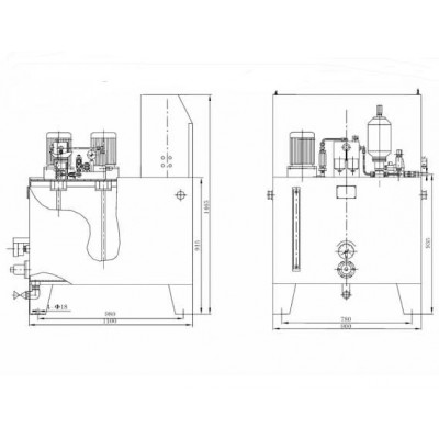 该站主要由油箱(带电加热器、液位计、电接点温度计、空气滤清器、液位控制器)、两台高压油泵装置(一备一用)、溢流阀、二位二通电磁阀、蓄能器、压力控制器、过滤器、单向阀、压力表等和PLC电气控制箱组成。在电动机的牵引下油泵工作,从油箱内吸入润滑油加压排出,途径单向阀、过滤器、蓄能器后向系统主管线供送。